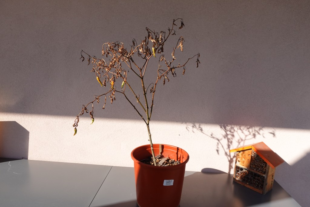 Prendiamo ad esempio il mio peperoncino messicano di tre anni. Nonostante l’aspetto secco dell’esterno, il cuore della pianta è ancora verde e vivo. La potatura consiste nel rimuovere tutte le parti secche, tagliando appena sopra i nuovi germogli. Ricorda, tagli obliqui e netti favoriscono la cicatrizzazione e prevengono i marciumi.